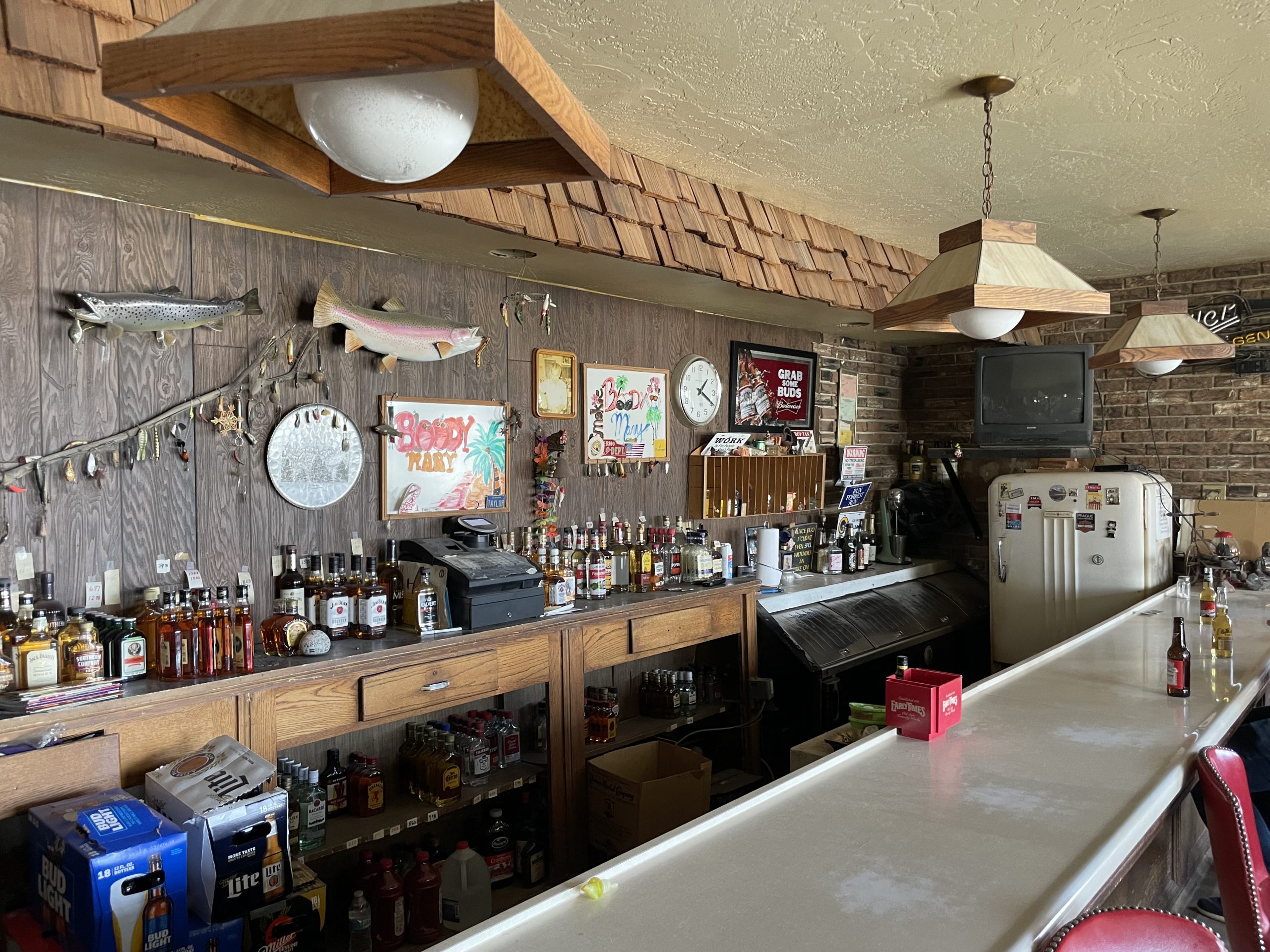 Lee’s Tavern looks like a seldom-frequented dive bar because that’s exactly what it is, a curiosity that has somehow stayed afloat, stocking to-go beer & liquor in addition to on-site pours. Interior features here are predictably scarce, a shingled, sloped ridge ringing the space to provide a divey counterpoint to the vertical wood paneling that circles Lee’s Tavern. Liquor bottles are lined up on a simple shelf behind the bar and under the bar itself, the selection here beyond what can reasonably be expected from a desert outpost watering hole. If a theme could be attached to the décor here, it might involve fishing thanks to a pair of fish and strings of lures dotting the walls.