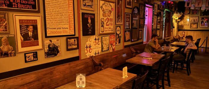 Along a set of active train tracks in Washington DC’s Brookland neighborhood, Dew Drop Inn looks like a dive bar much older than its 2015 founding date, probably the highest compliment a new-ish dive bar can receive. Thanks to a unique, towering, triangular building, Dew Drop Inn twists through a unique set of spaces, each offering a slightly different vibe.