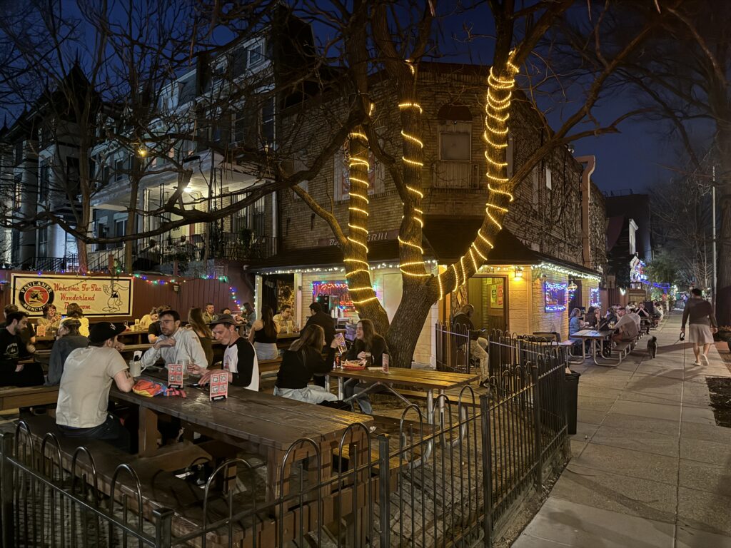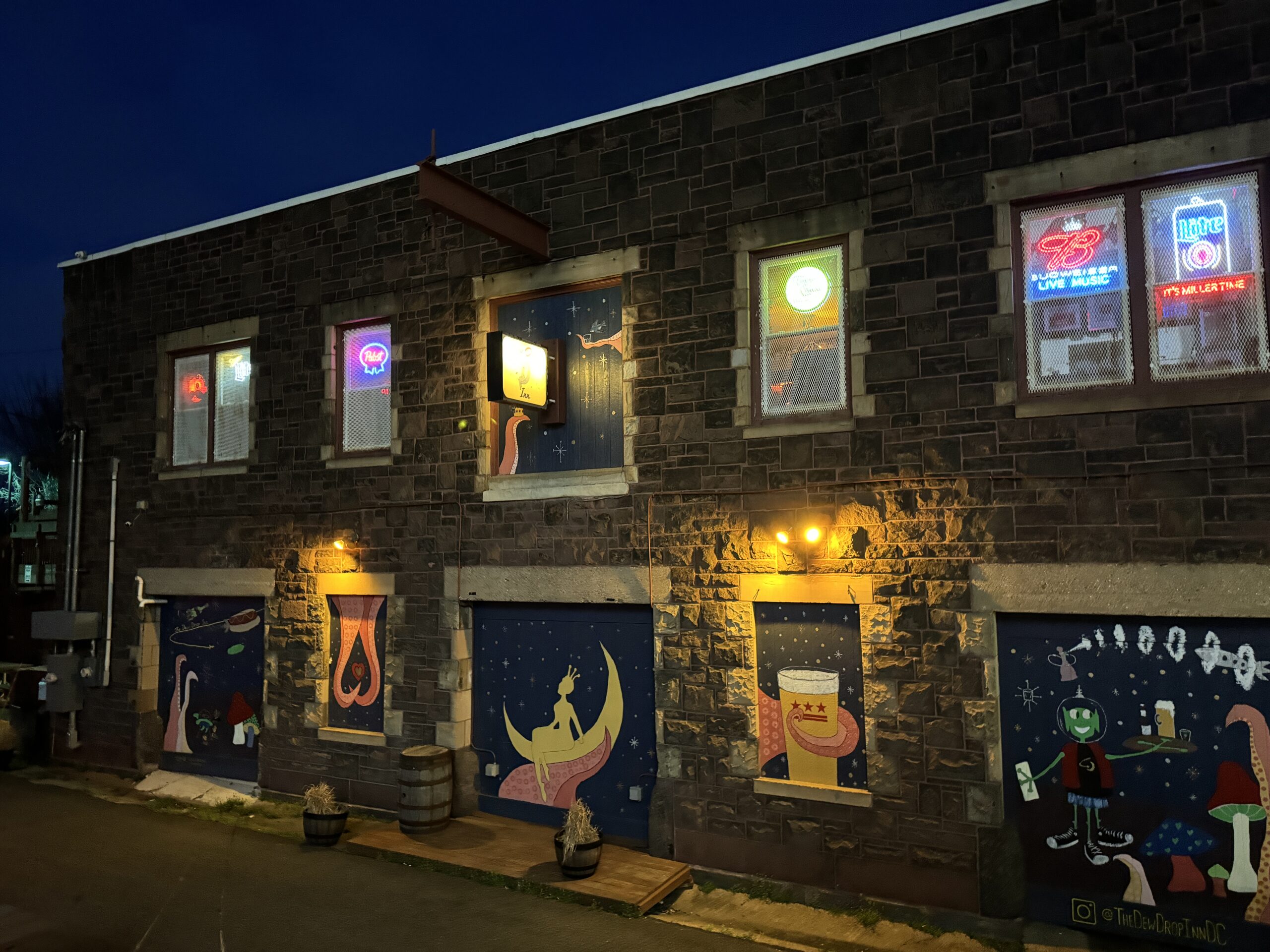 Along a set of active train tracks in Washington DC’s Brookland neighborhood, Dew Drop Inn looks like a dive bar much older than its 2015 founding date, probably the highest compliment a new-ish dive bar can receive. Thanks to a unique, towering, triangular building, Dew Drop Inn twists through a unique set of spaces, each offering a slightly different vibe.