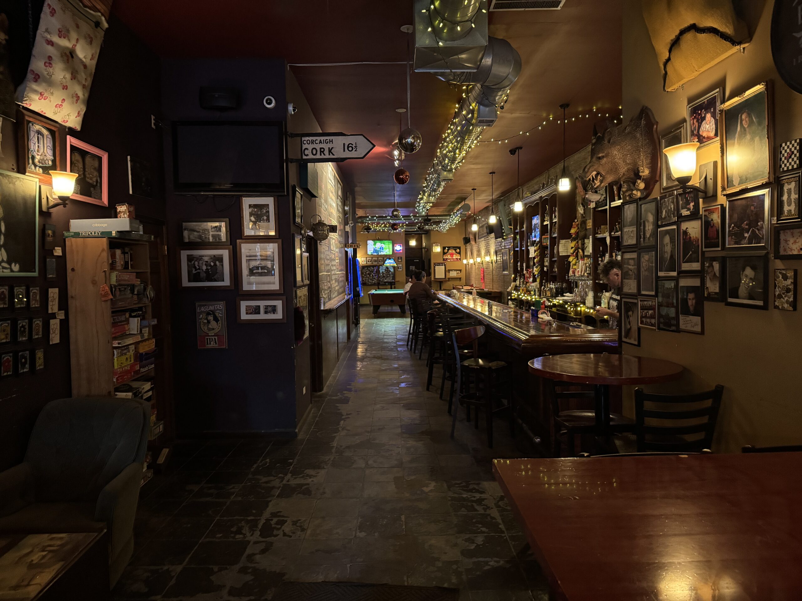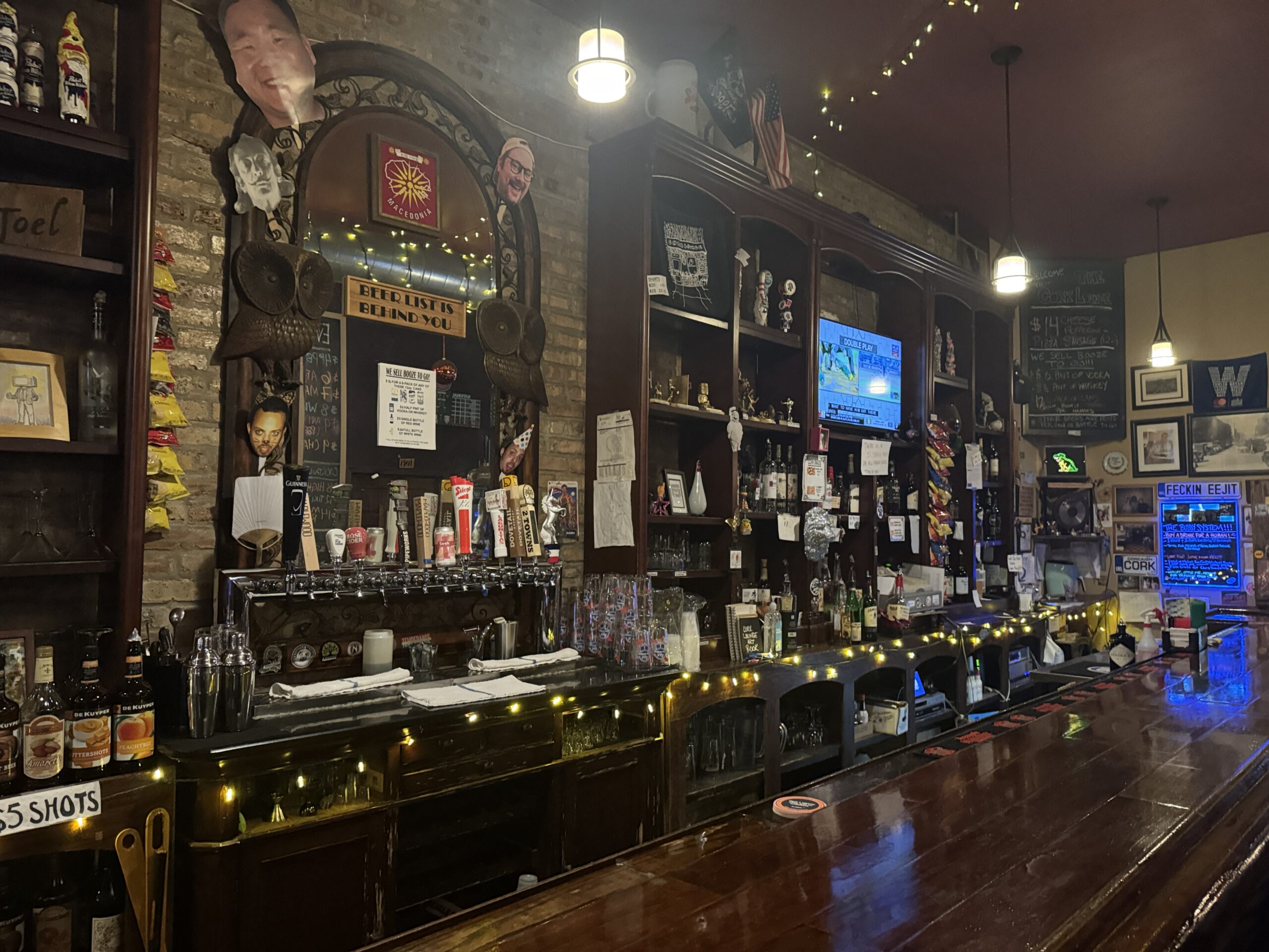 Remodeled as an “Irish speakeasy”, the Irish suggestion to the bar’s name is reflected certainly in the availability of the country’s signature beer as well as an Irish street sign mounted to the interior wall, but the drink menu veers well away from any restriction to Irish exports. Chicago dive bar staples like Old Style, Hamm’s and PBR are of course available, but so too are signature cocktails, champagne splits and even the stray Belgian beer bottle.