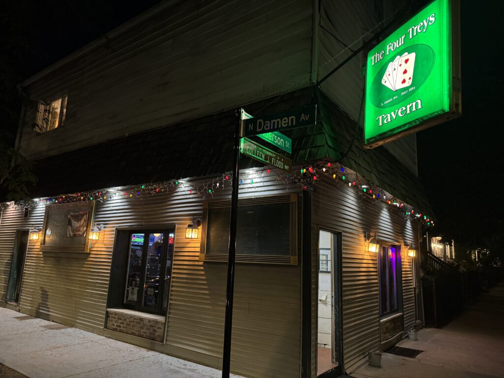 Dog-friendly and about as classic as a Chicago corner bar gets under a bright, casino-grade green sign.