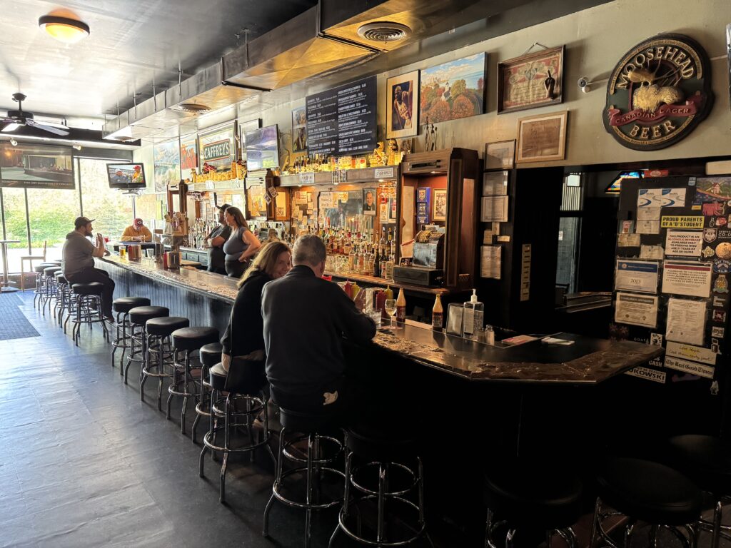 As with really any Chicago dive bar, the clientele here is diverse, pulling locals from the neighborhood as well as nearby University of Chicago students. A sign restricting access to anyone under 23 has historically been part of Falcon Inn’s minimal exterior signage, though the policy seems seldom enforced. The Falcon Inn floorplan is downright spacious, the main bar area flanked by a pair of open seating areas divided in part by an exposed brick wall that runs down the center of the structure.