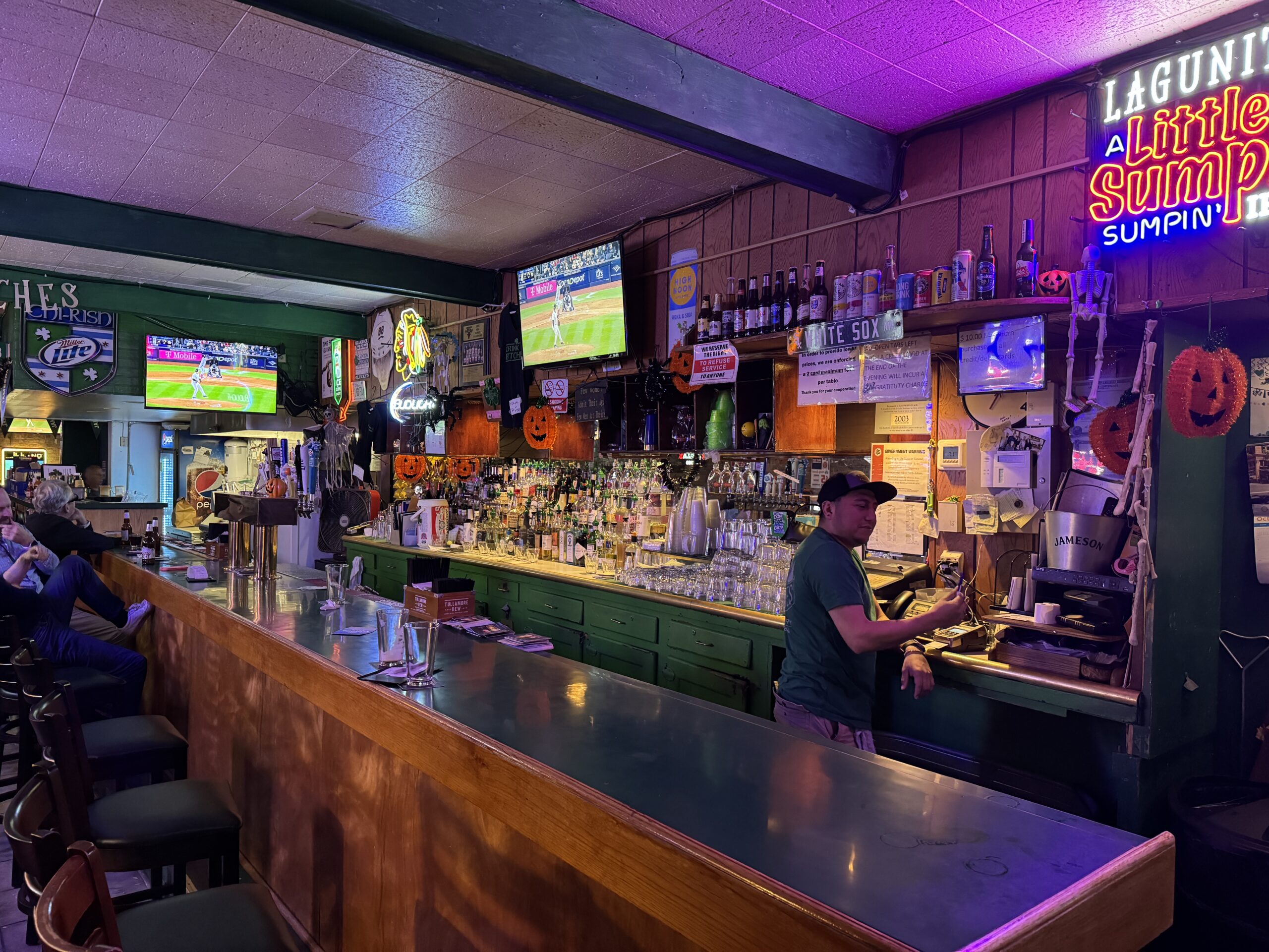 Smoking-friendly, photos banned, the massive Irish flag mural outside hints at a potential 'family' connection.
