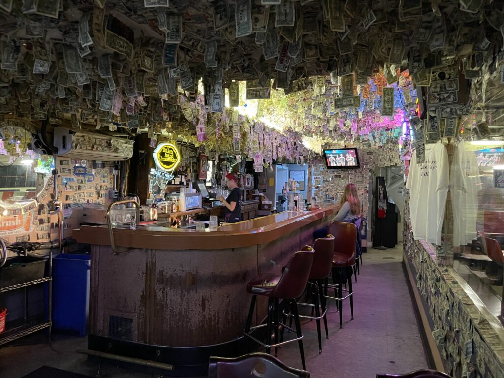 In contrast to the vertical wood paneling that comes with the dive bar starter pack, Matt’s Bar goes the extra mile with some wallpaper along one wall, the perfect contrast to the wide array of framed news clippings discussing the merits of cheese-stuffed meat patties. Articles are complemented with framed pictures of the bar itself, an array of available merchandise and even a handful of wooden ducks, because why not.