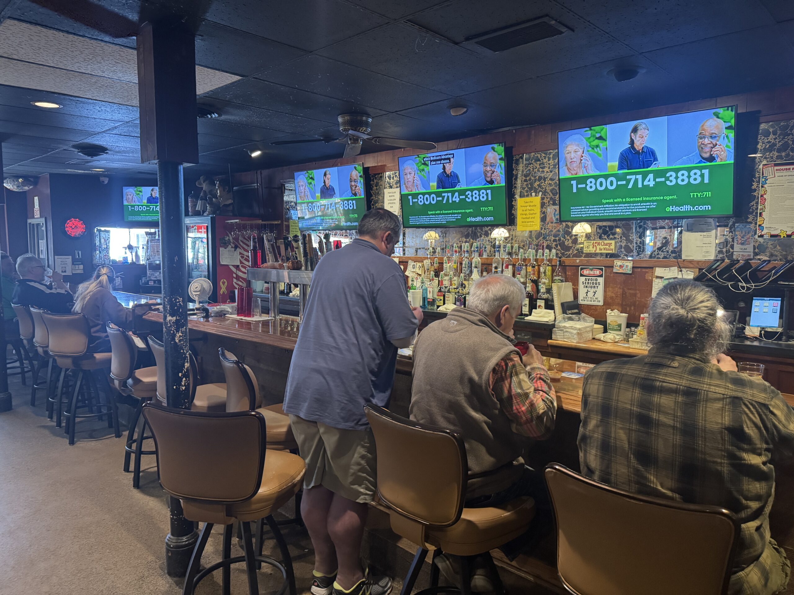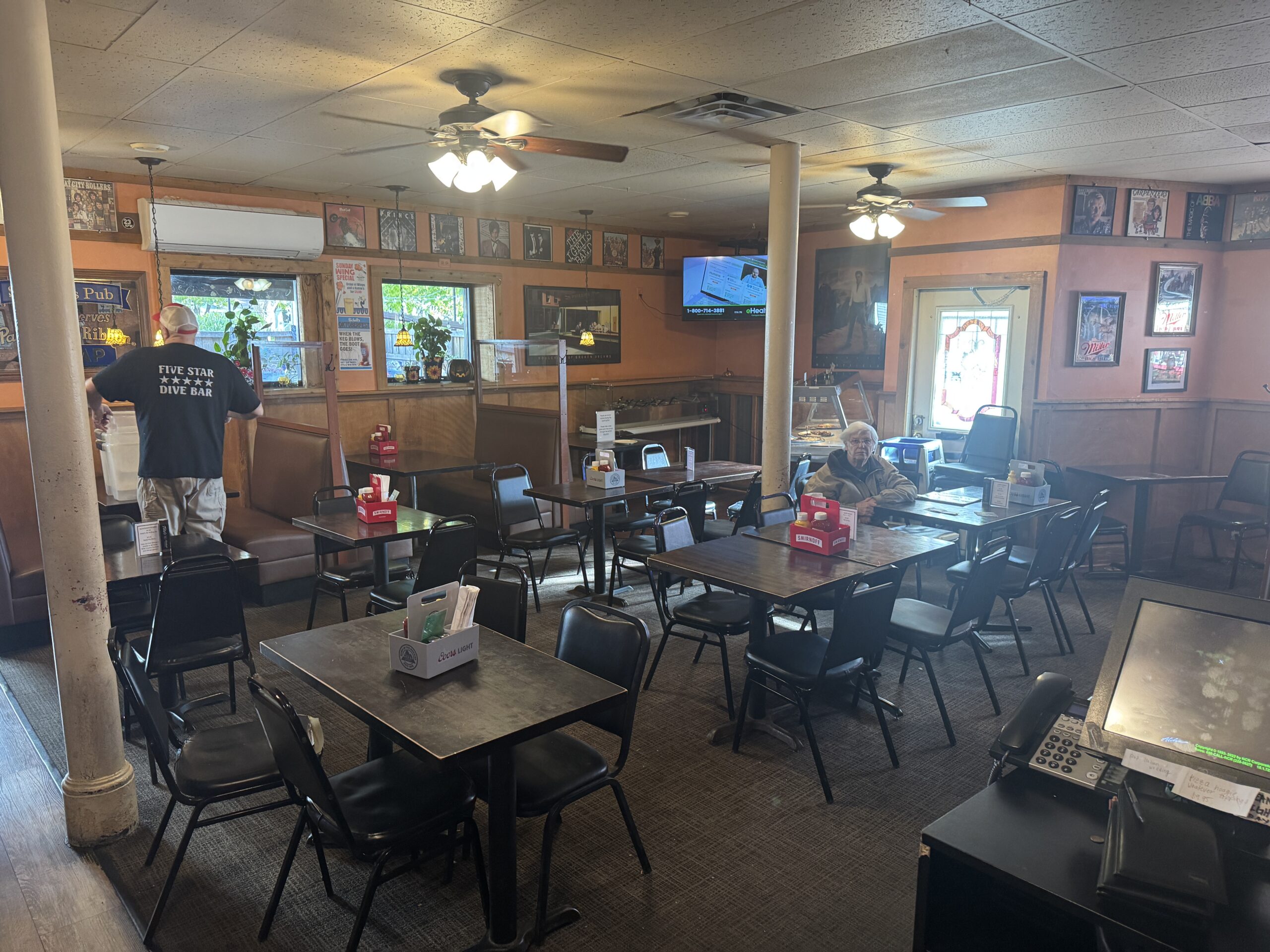 The Skinners embraced the heritage of the structure by leaving much of its exterior appearance untouched, even fashioning the bar’s illuminated sign in a throwback style befitting the structure. Appropriately, the bar’s sign that hangs from the corner of the building is quick to point out the bar’s lunch and dinner food business, featuring a square cut, tavern-style pizza that has become an area favorite.