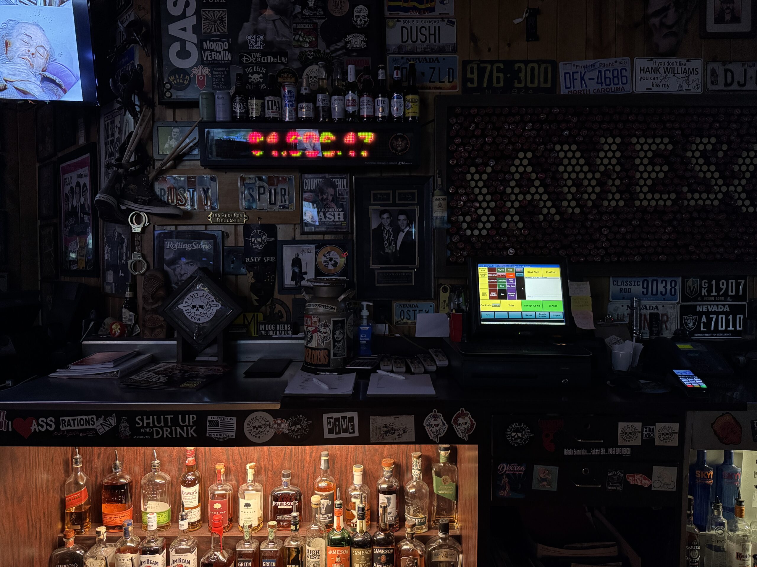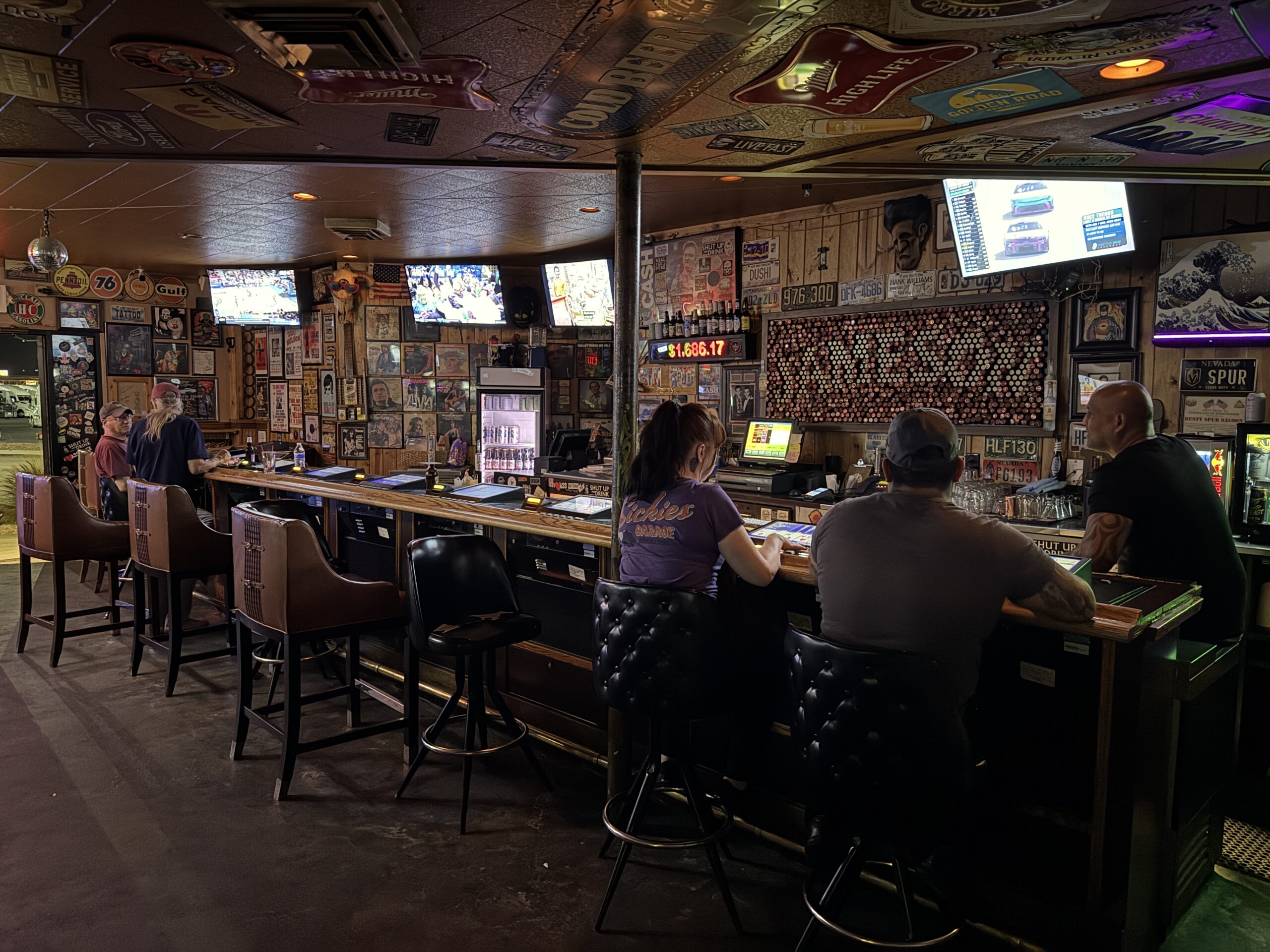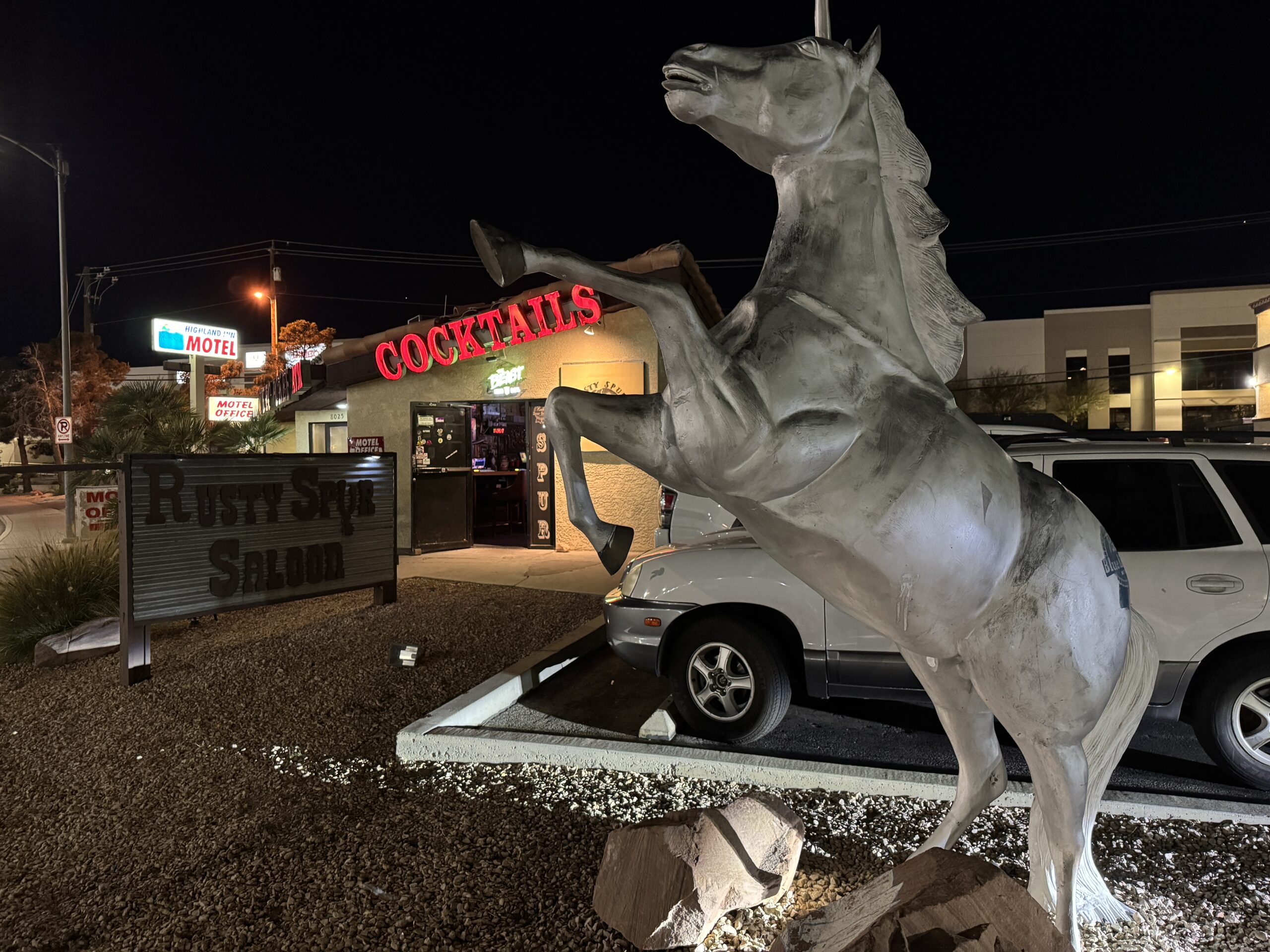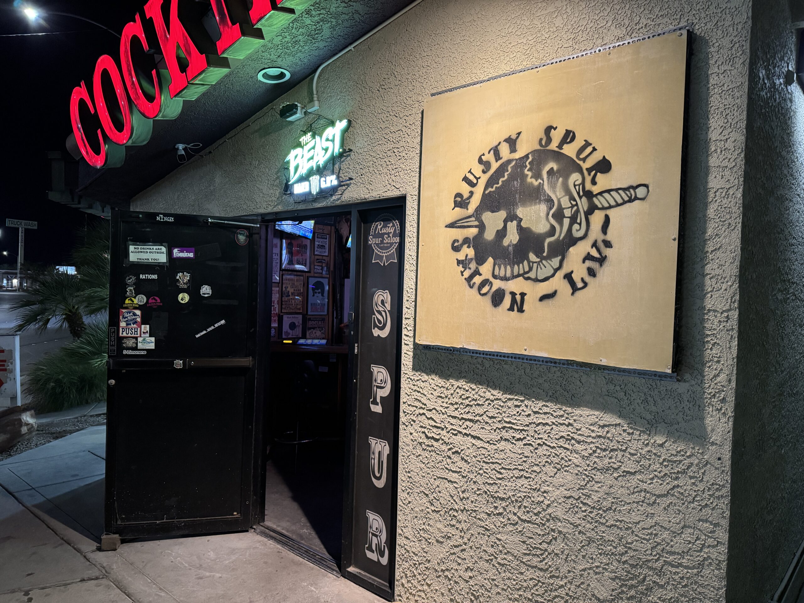 Across the street from a Travel America Travel Center, Rusty Spur is sometimes referred to as a trucker or biker bar, but all walks of life are well represented inside. Given the bar’s location well south of Las Vegas proper toward the city of Enterprise, the assembled crowd is more likely made up of locals & regulars rather than prototypical Las Vegas tourists. That being said, dive bar enthusiasts, visitors to the nearby Silverton Casino and everyone in between are welcome.