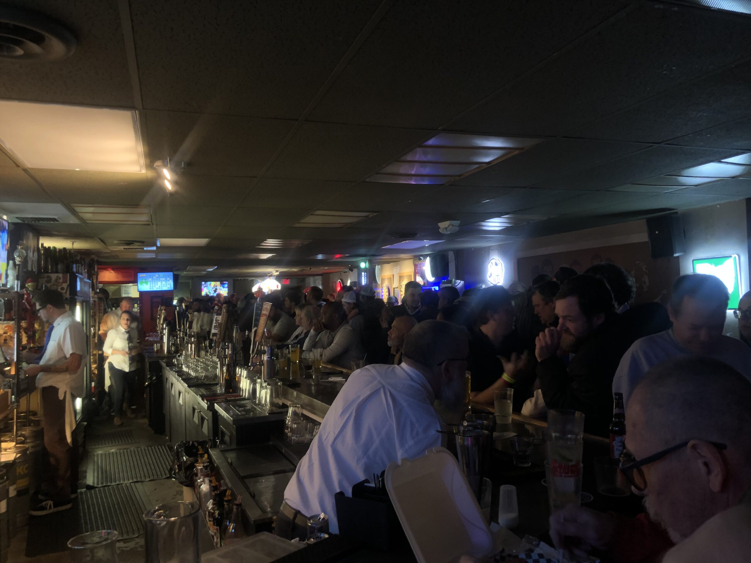 The Bob’s Bar layout is narrow, it’s long, and it’s dotted with enough roadblocks, enclaves and barriers to make a trip to the bathroom on a Saturday night a time for prayer and hope for safe passage. Though the bathrooms have been renovated through the years, the footprint is still small, making for some tricky angles, fleeting privacy and expedient exits.