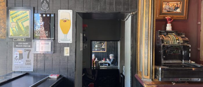Wilson opened Woodlawn Tap in 1948 and operated the bar until passing away in 1999, a period of longevity legendary among Chicago dive bar fans and Hyde Park residents. The space served as a restaurant as early as 1926 before stints as ice cream delivery hub and precursor bar Little Tom’s Place. Wilson purchased the space in 1948 with partner Michael Filz, the business at that time a combination package store (liquor store) and bar. In relation to today’s three-room Woodlawn Tap layout, what was once the liquor store is now the middle room and main or ‘first’ room has always been home to the bar.